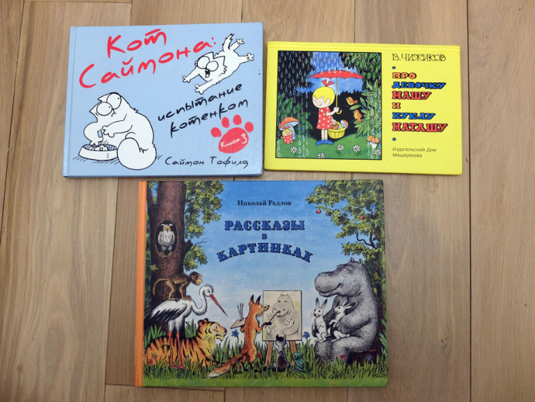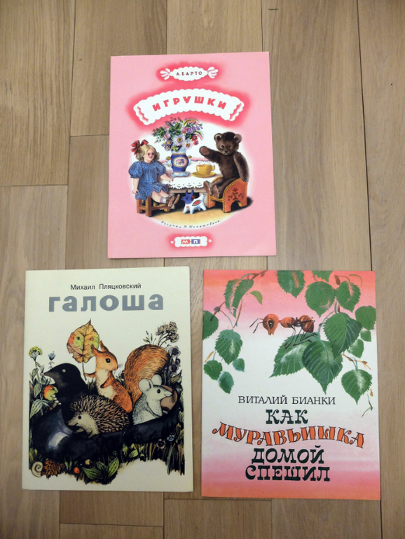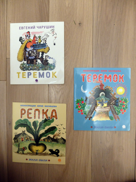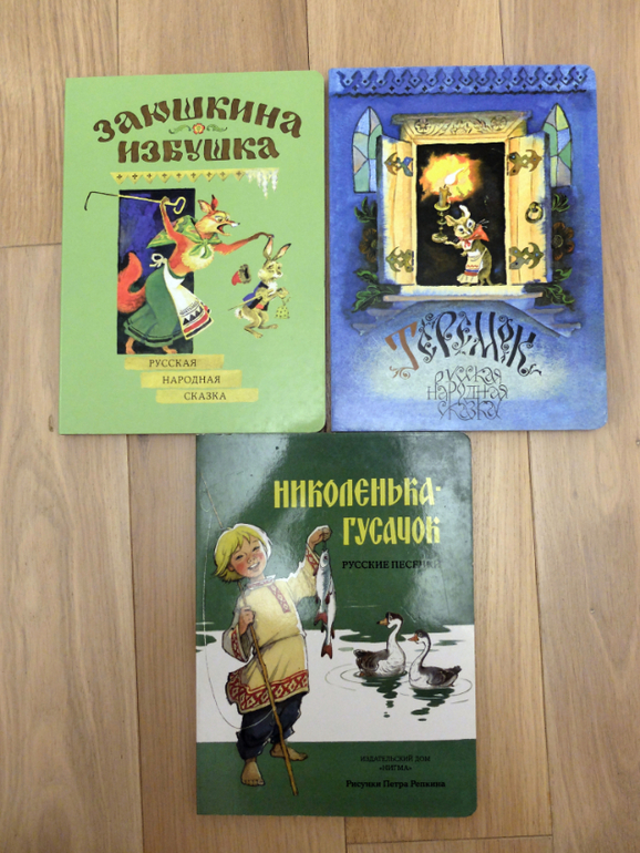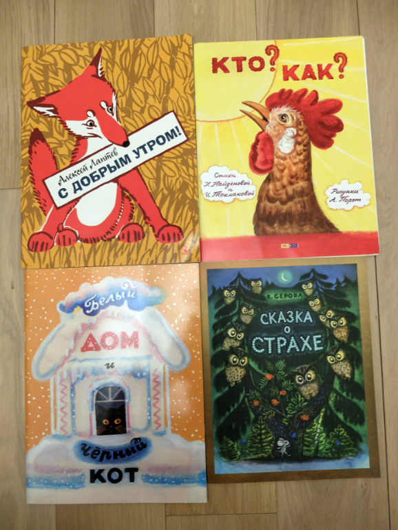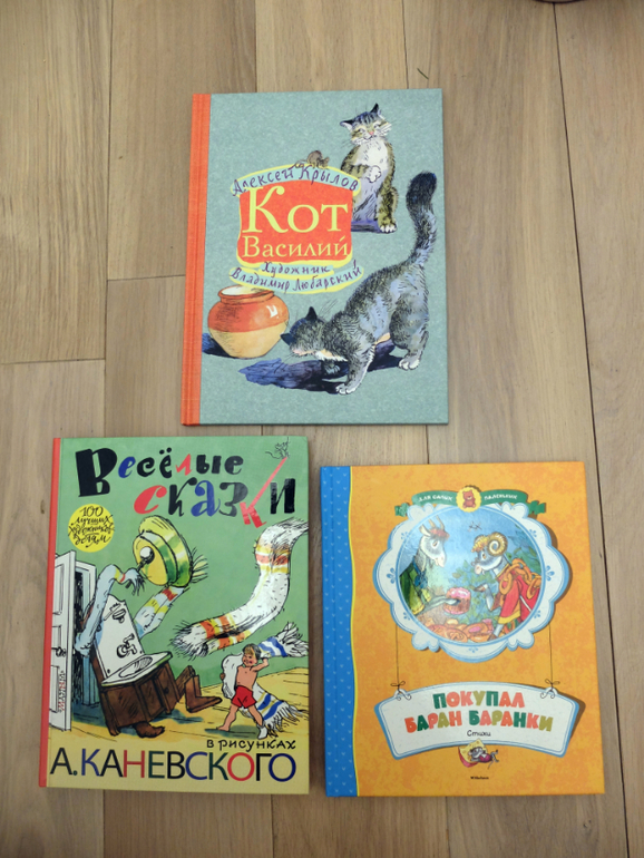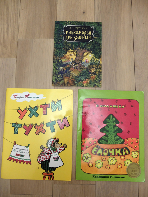 А вот три книжки, которые у нас не пошли вообще. Их достаю только я и то иногда. Хотя картинки хорошие, текст тоже.