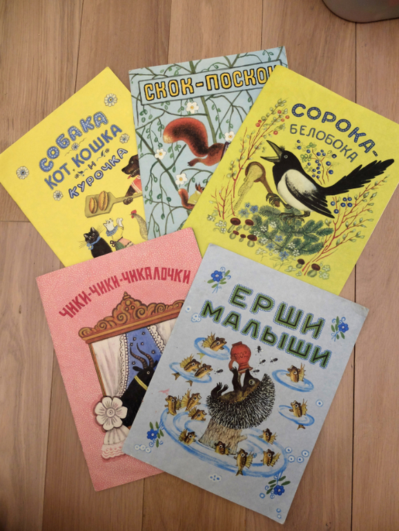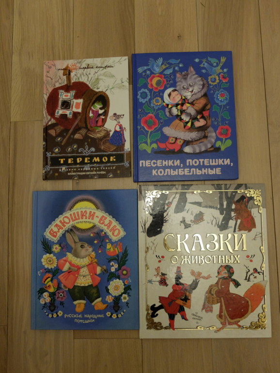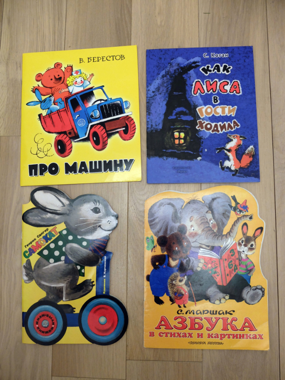 Начали мы с книжек-картонок. К сожалению в России мало хороших экземпляров. А те что есть страдают либо не очень хорошим качеством печати/переплета, либо просто откровенно плохие в плане иллюстраций. Про цену я молчу. Часто она непомерно и неоправданно завышена.
