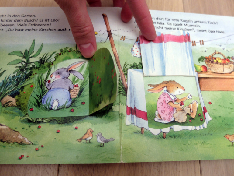 2. Во всех зарубежных книжках выдвигающийся элемент как правило двухсторонен, что мне очень нравится. Здесь нарисованы вариации на тему божьей коровки с фонариком.