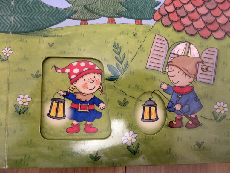 2. Рассказ о том, как два гномика ходили укладывать спать зверей в лесу. На задней обложке есть имена героев и еще несколько гномов. Судя по всему, это серия книг.