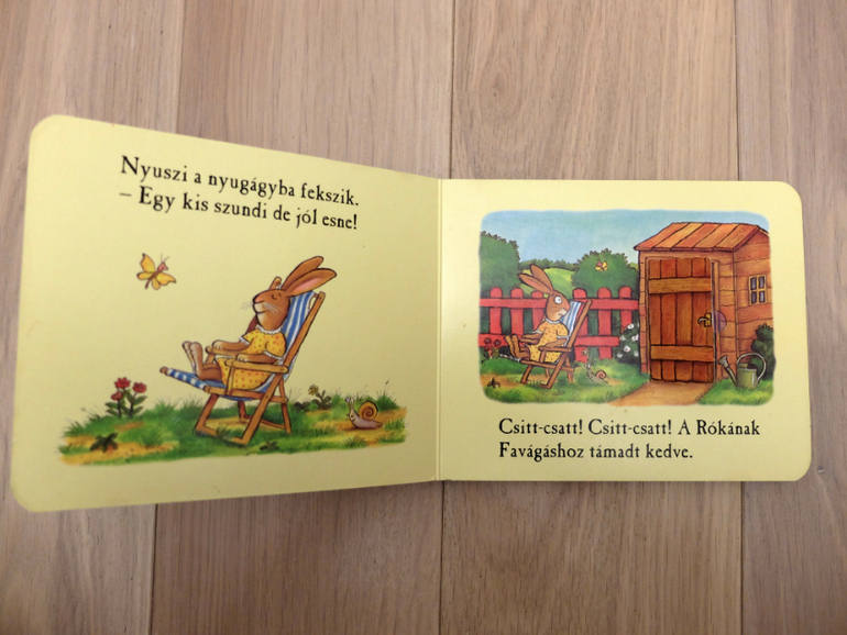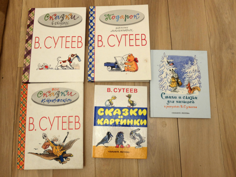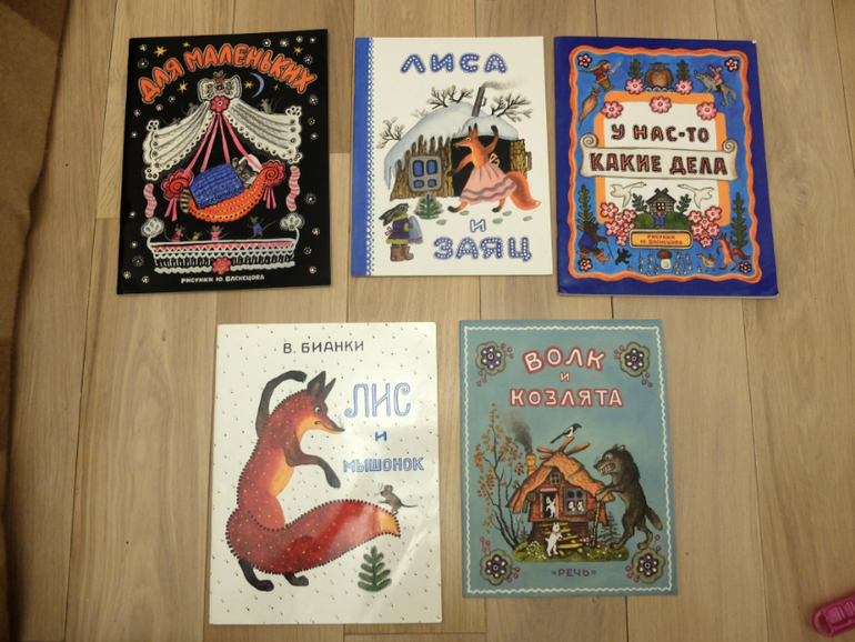 Из наших книг самая любимая про зайчиху Нюсю, которой все мешали спать, потом идет медведь, который приглашал друзей на день рождения, на третьем месте лис, который искал свои шмотки по всем укромным местам квартиры.