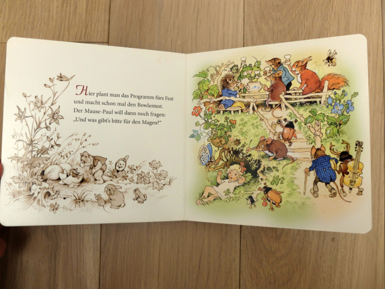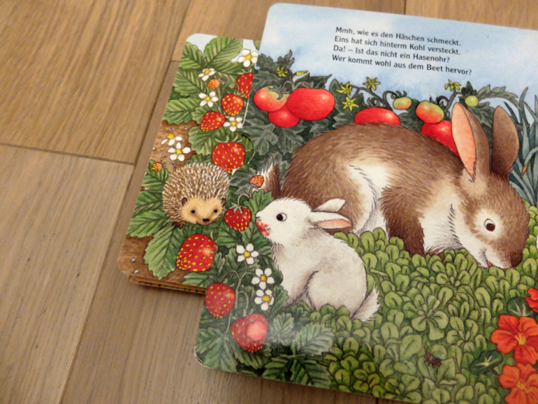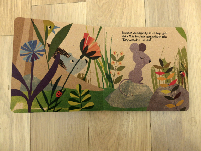 Еще две Голландские книжки. Напечатаны на переработанной бумаге. Одна про мышонка, который играл с друзьями в прятки, но пока искал нашел клубнику, наелся и уснул.