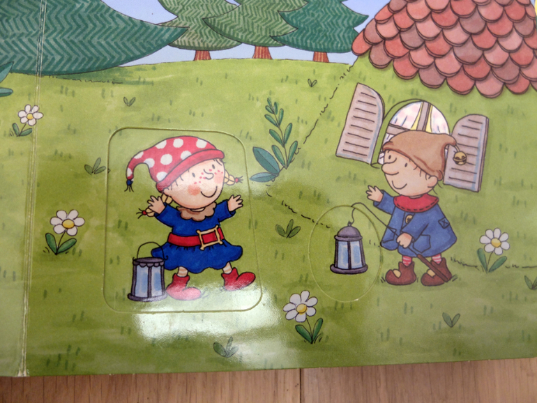 1. Дверку, за которой прячется дедушка, дочка оторвала. Надо бы приклеить:)