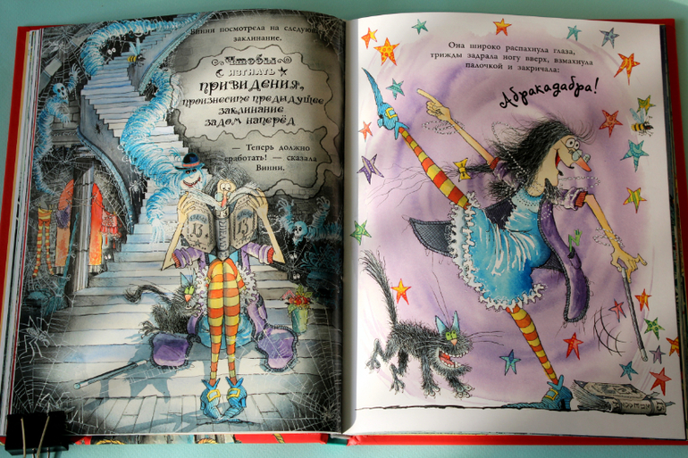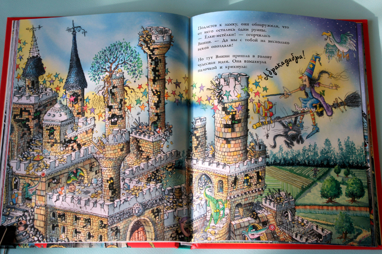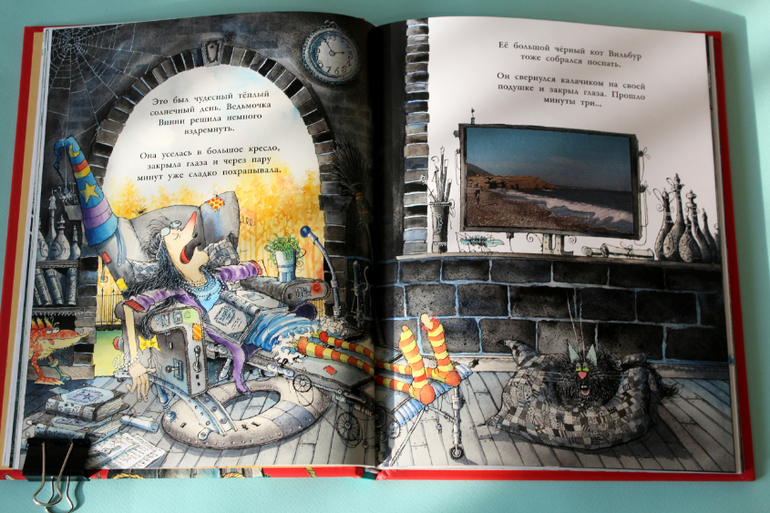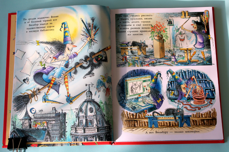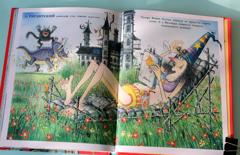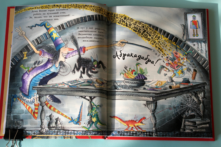 В покупке даже не сомневалась, ведьмочка Валери Томас расчудесная! Текст наполнен юмором и приключениями, а рисунки Корки Пола просто идеально подходят к тексту. Это же настоящий виммельбух! Только не с 10 страницами, как это обычно бывает, а толстенный виммель! Нет, даже лучше виммеля, ведь тут и придумывать рассказ не надо, на каждом развороте небольшой, но смешной текст. Дети просто зависают на каждом развороте! Может у художника есть собственная волшебная палочка, которая помогает творить такие шедевры для деток?!)