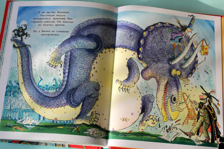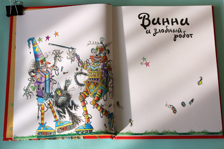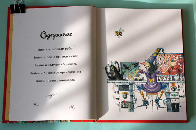 Историй в книге 5, все интересные как для мальчиков, так и для девочек. Винни у Валери Томас добрая, весёлая, обожающая своего чёрного котика!Она любит ходить в библиотеку. Ещё бы, я бы сама с удовольствием в такую ходила бы, там постоянно проводятся разные мастер-классы! Хотела Винни сделать медведя, а вышел робот, жаль только не живой, была бы здорово, правда? Но, как нам известно, желать нужно осторожно, особенно, если под рукой волшебная палочка, так и проблем можно целый ворох заиметь.)) И без тематического Дня рождения в книге не обошлось. Винни, как обычно, самая фантазёрка и заводила, без неё было бы довольно скучно на любом празднике. Привидения, рыцарские турниры, милые динозавры - чего только нет в этой книге. Если вы её ещё не купили, то только остаётся подивится вашей стойкости.)