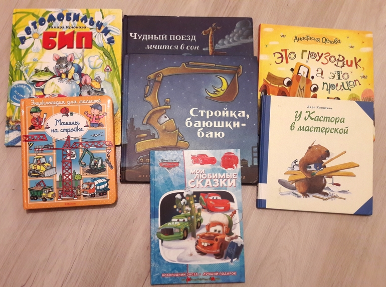 "Стройка", "поезд" и "грузовик" - наши настольные книги, не надоедают с года, читаются постоянно. Новинка здесь - про бобра Кастора. Выучили все инструменты, знанием киянки поразили даже папу. Но вообще считаю, что книжка не обязательная совсем. Такие надо брать в библиотеке.. эх, где б еще библиотеку, чтоб там все было...