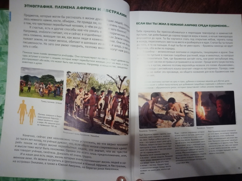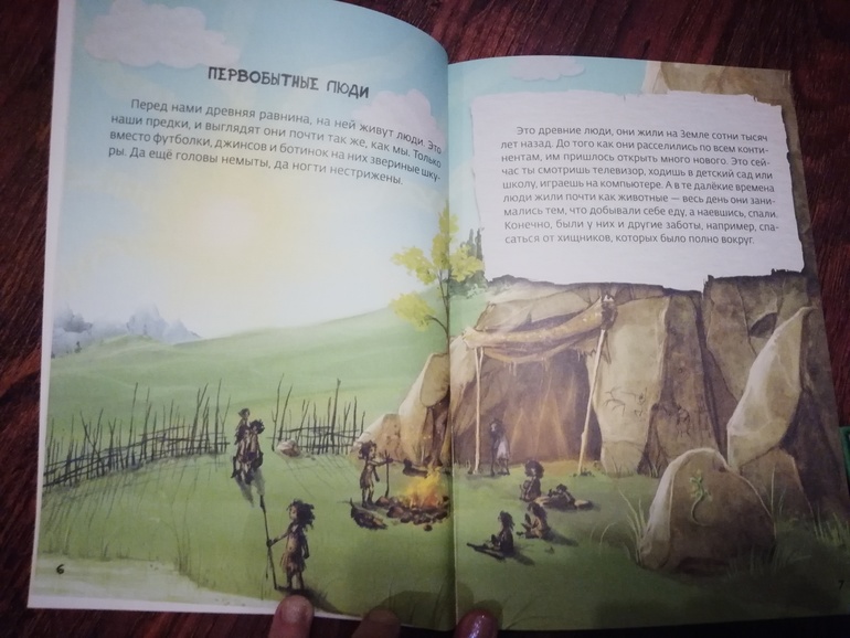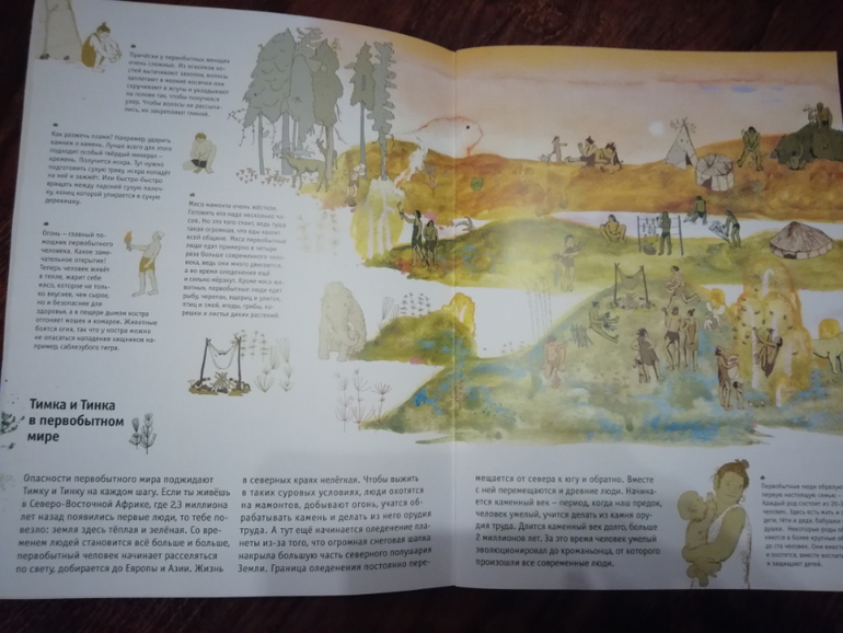 Первобытые люди тоже энциклопедия, и, на мой взгляд, она лучше передает атмосферу каменного века, чем Мы живем в каменном веке. Детям эта книга понравилась больше, в ней на примере первобытной семьи ребенок знакомится с каменным веком, все тоже самое, что и в первой энциклопедии, но в другой подаче материала. Можно было обойтись только этой книгой, чтобы познакомить детей с каменным веком.