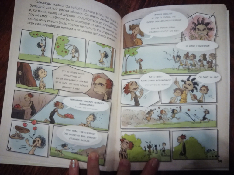 Первое, про что хотелось бы рассказать, это энциклопедия Мы живем в каменном веке. Энциклопедия эта тоненькая, но информации в ней очень много. При этом написана она очень интересным языком, подача информации просто замечательная. Мне очень понравились иллюстрации, они отлично дополняют текст, первобытные люди получились у иллюстратора очень забавными и добрыми. Книга знакомит ребенка с атмосферой каменного века, рассказывает как жили люди, как охотились, как трудились, как выглядел очаг, как люди жили общинами, как научились земледелию... В общем, все что нужно знать о каменном веке можно найти в этой энциклопедии. Детям книга тоже понравилась.