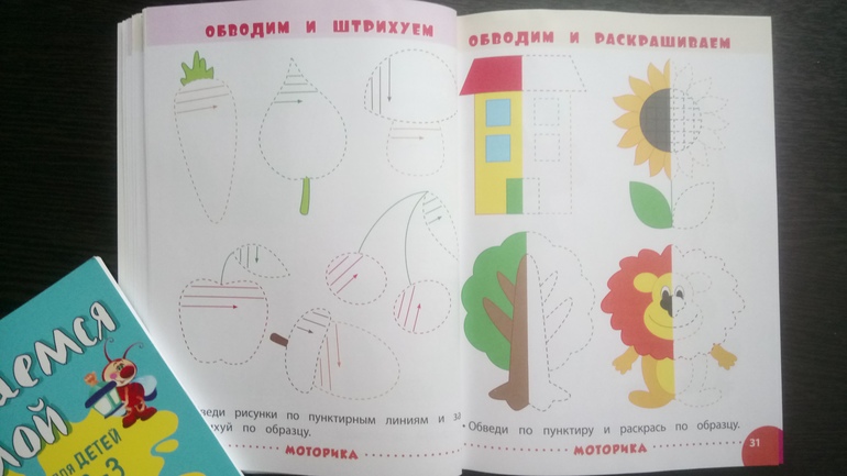 Обе книги построены по одному принципу и состоят из четырёх разделов: логика, моторика, математика, буквы. Покажу по страничке с каждого раздела из обеих книг.