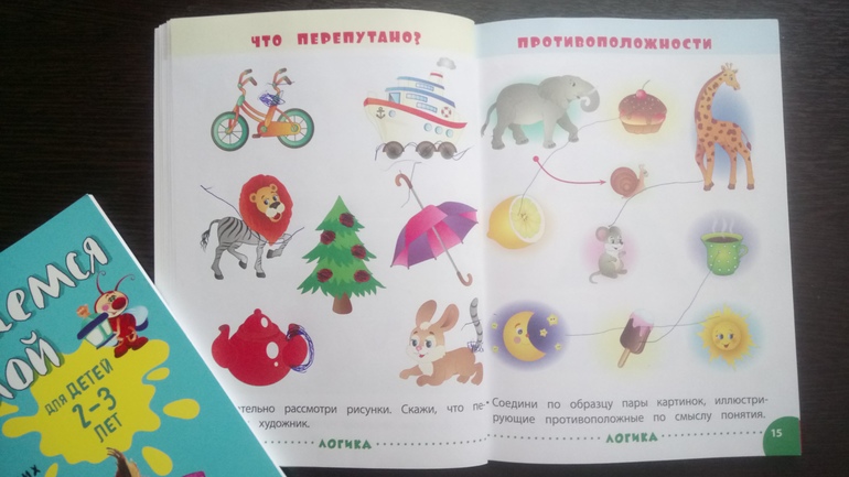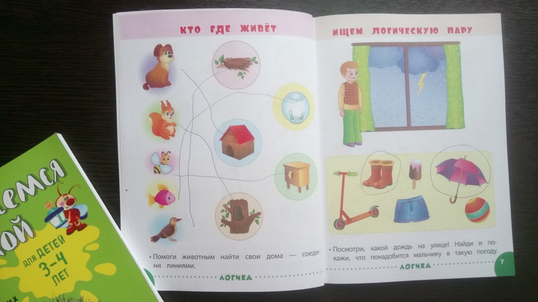 В первой книге раздел "логика" мы прорешали с сыном, пока я готовила овощную запеканку и мне нужно было его занять чем-то спокойным, чтобы не будил сестру. Во второй книге задания для сына посложнее, разбираем лишь некоторые и остальные я помогаю понять, когда не занята чем-то посторонним во время работы с книгой.