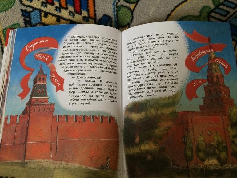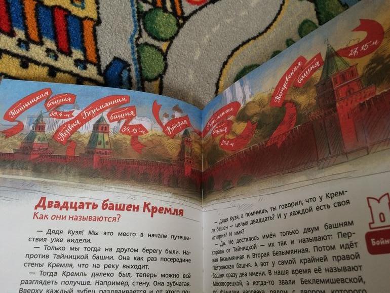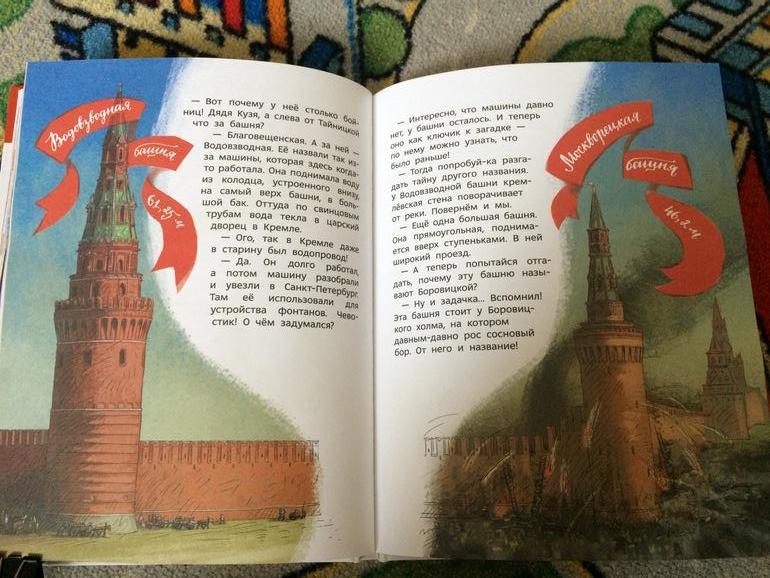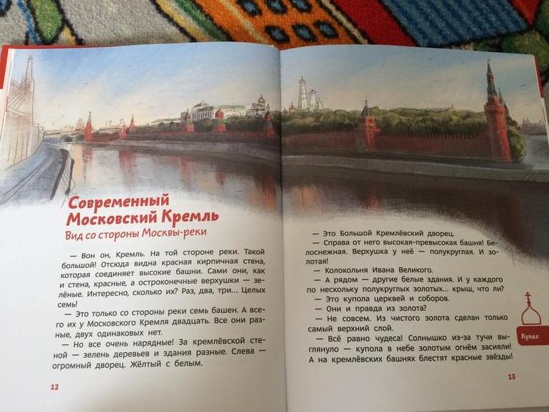 отзывыПобывав на Красной площади с ребенком, я, как уже говорила, поняла, что ничего-то я и не знаю, кроме Спасской башни и Боровицких ворот. А услышав "А" (о том, что башня с часами называется Спасская, а сами часы Курантами), Кирилл начал спрашивать про "Б" - а эта как, а вот та? Стыдно было, но пообещала. что купим книжку и все прочитаем))