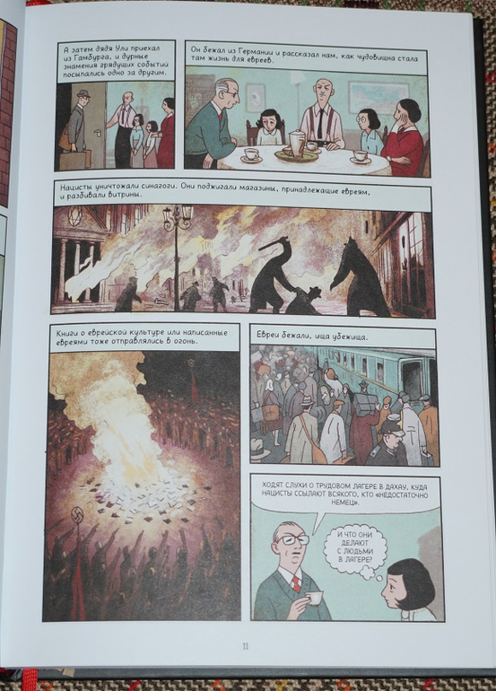 Мне довелось прочитать несколько страниц из обычного, текстового дневника Анны Франк. Удивительно, но такая вот графическая версия очень точно и довольно полно передает содержание оригинала. Рекомендации по возрасту - лет с 14 или даже старше, на мой взгляд.