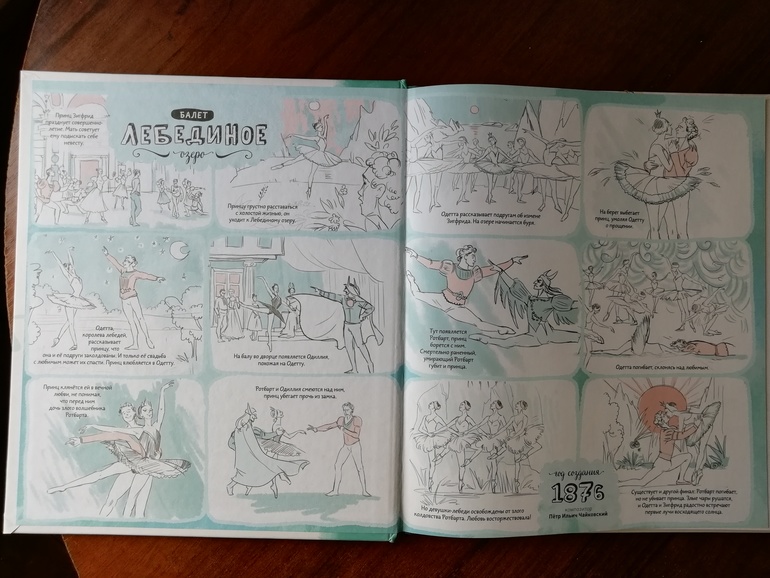 Первое, на что хотелось бы обратить внимание-это форзац и нахзац книги, они не пустые, а с интересной информацией. Теперь я знаю о чем Лебединое озеро (раньше не знала).