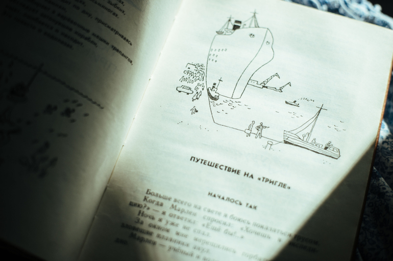 И всё это вдруг обернулось всего лишь ничего не значащими, хотя и тёплыми историями из прошлого, когда моя книга пришла ко мне. Спонтанно и внезапно. Без рисунков и с другим переводом (Токмаковой, искала и ждала лет пять Лунина). Я наконец добралась до путешествия на лодке, здесь стопорились наши с сыном попытки читать на английском.