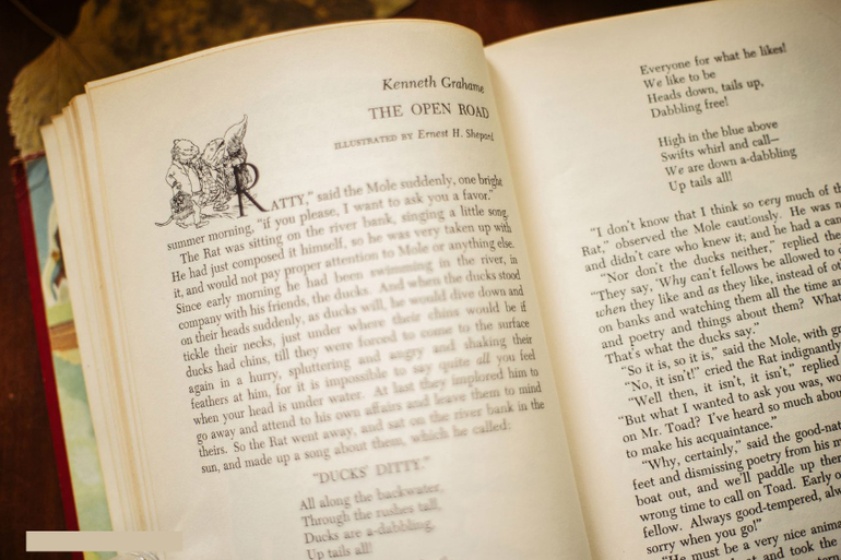 Но, конечно, "Ветер в ивах" богат и событиями. И как так получается, что занимательные, затейливые, уютные, порой опасные сюжеты вдруг оборачиваются пронзительным в своём ясном спокойствии и дорогим откровением, близкими мыслями, знакомыми чертами. Так. Не "рождённый ползать летать не может", а...