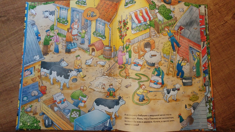 История про мальчика Павлика, который хотел себе экскаватор как у его друга и какбабушка с дедушкой его подарили..наблюдаем как стоят и ремонтируют дома, ремонты на дороге, жизнь на ферме, совместные игры на площадках