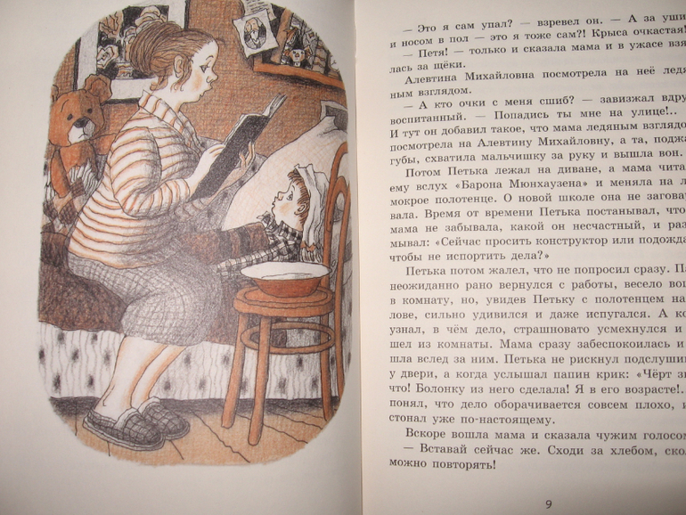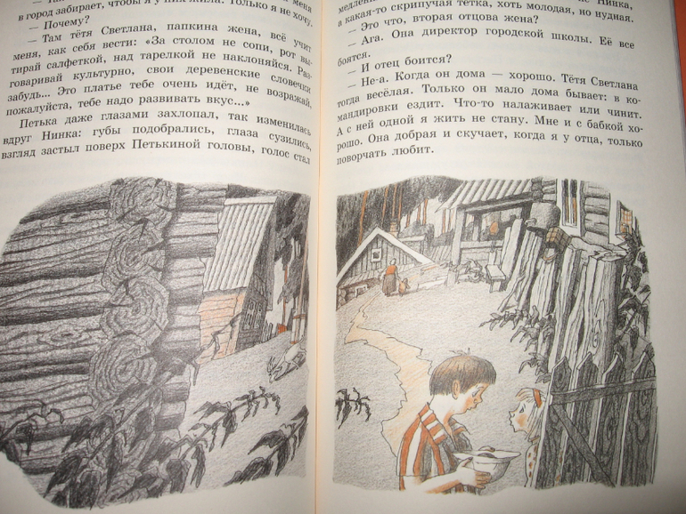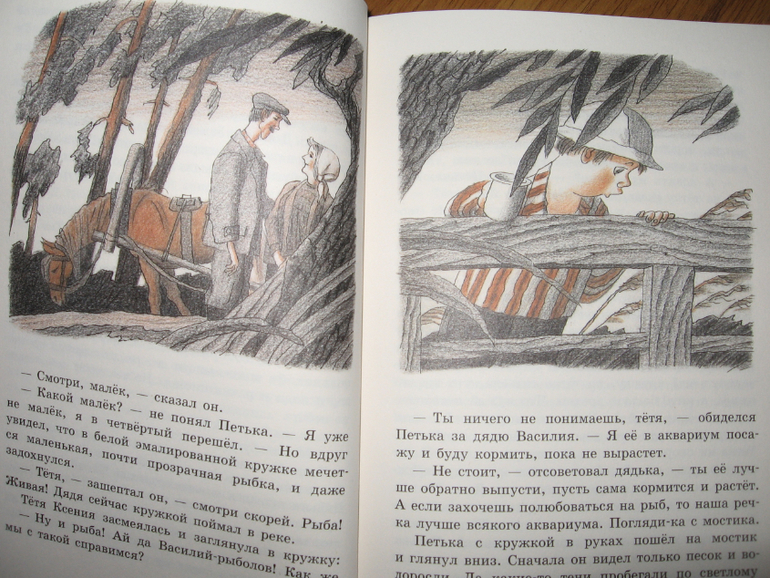 В перерыве между первой и второй частью Новаторов, предложила Егору почитать "Петьку". Сын особо не сопротивлялся, даже наоборот, книга-то новая, а новые книги всегда интереснее, чем те, которые куплены неделю/месяц/год назад. Читается история довольно легко и быстро, поэтому осилили эту книгу без особых проблем, нахохотались до колик в животе. Когда Петька забрался в погреб и хотел полакомиться колбаской, сын гордо нарек его сорванцом) А когда Петьке пришлось стирать в речке белье, то у Егора возникло подозрение, что он что-то сейчас обязательно напортит. На протяжении всего повествования интерес не угасал, поскольку события развивались очень динамично. Кроме того постоянно происходило что-то новенькое, добавлялись персонажи, менялся сам Петька и пр. А когда была перевернута последняя страница, Егор очень расстроился, даже не столько оттого, что кончилась книга, сколько от того, что история ему показалась незавершенной. "А что было дальше?", "Наверное должно быть продолжение!!!", "Поищи, пожалуйста, еще книги про Петьку!" Но увы... Просто пообещала поискать другие книги этого автора (сразу купить что-то обещаю редко, вдруг моя душа совсем к покупке не ляжет. 😀 Функцию родительский контроль никто не отменял)