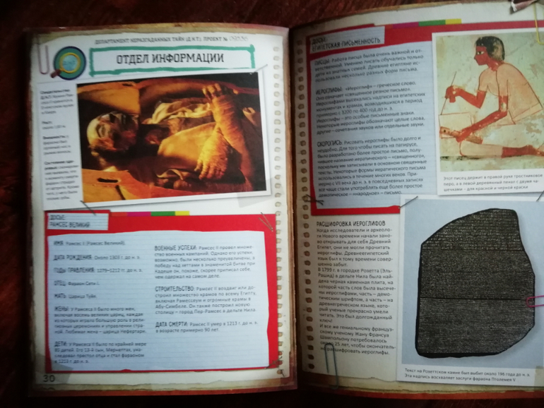 В самом дневнике страничка с записями Герберта и задание для нашего сыщика. Задания интересные, по ходу их выполнения мы узнаем много новой информации о Египте, рассматриваем вложения из конверта.