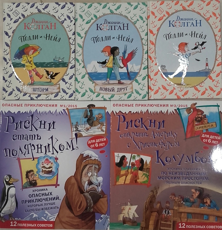 Полимания захватила и нас)) все книги прочли с сыном за день, очень понравились, хотел продолжения) обещала испечь булочки по рецепту.Серию опасные приключения потихоньку собираю в мягкой обложке. Их оценил муж, сказал надо купить все))
