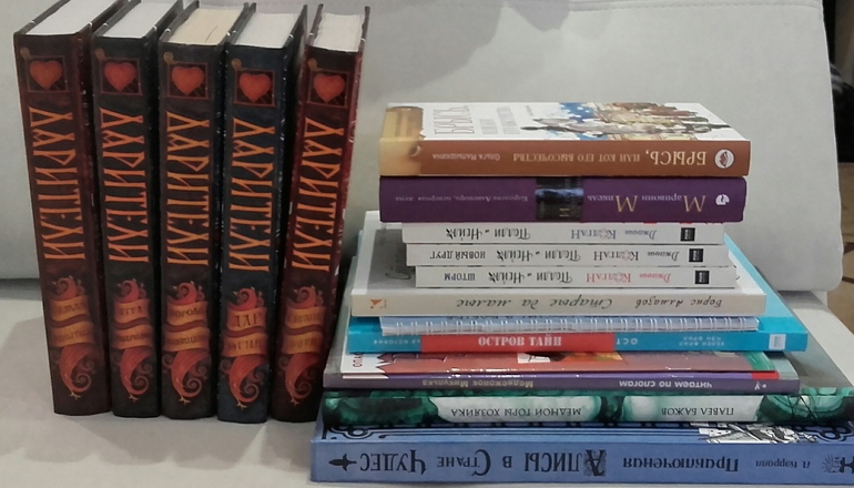 Оля, какая стопочка "сногсшибательная". Надеюсь, Дарители" понравятся тебе, а то ты так масштабно с ними... А еще надеюсь, что до августа не раскупят "Полли и Нейла". А то после таких замечательных отзывов уже наверное, все ДК этими книжечками закупилось.