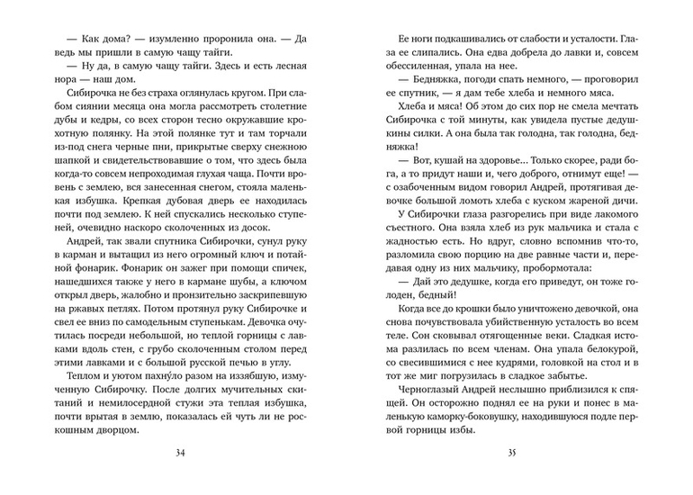 В свое время книги Лидии Алексеевны Чарской по своей популярности могли поспорить с изданиями поэтов Серебряного века. Повесть «Сибирочка» - это удивительная история княжны Александры Гордовой, волею судеб разлученной с родным отцом и выросшей в таежной глуши. Девочке предстоит пройти множество испытаний, преодолеть невзгоды и опасности, обрести верных друзей, прежде чем она сумеет отыскать отца. Жизнелюбие, благородство, отвага - вот те качества юной героини Лидии Чарской, которые покорили не одно поколение юных читателей. А увлекательный сюжет до самого финала не позволит оторваться от книги! В издание включены иллюстрации к этой повести замечательного чешского художника Венцеслава Черны.