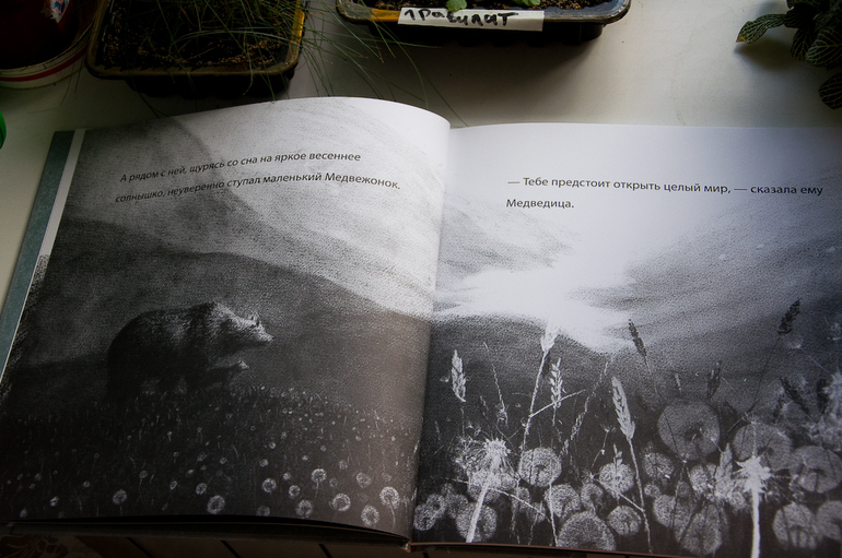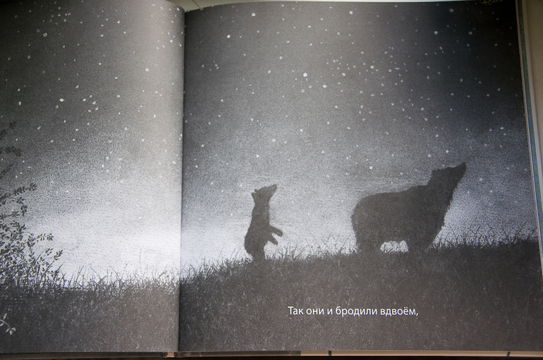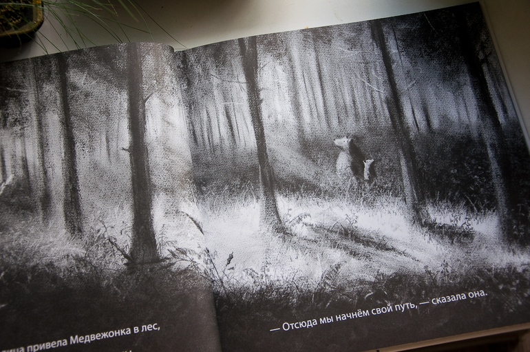 Иллюстрации черно-белые, но поражают своей глубиной, тишиной и светом. Свет в этих картинках - главное. Словно материнская любовь, она озаряет наших героев, ласкает, ведет их...