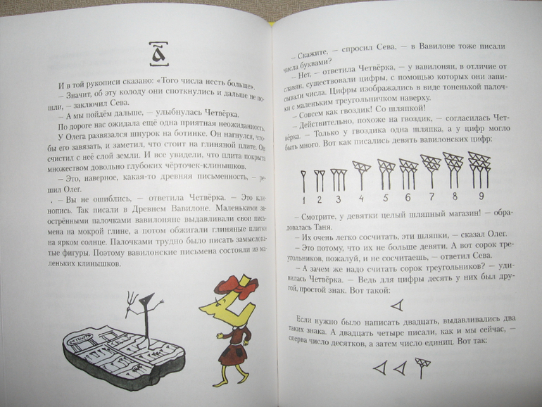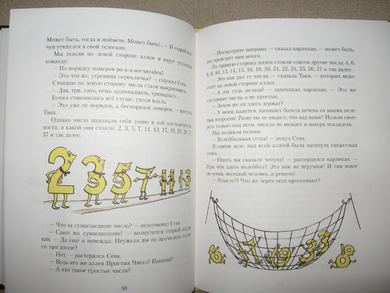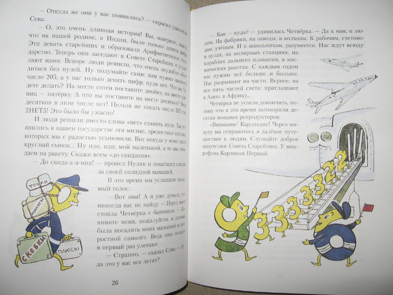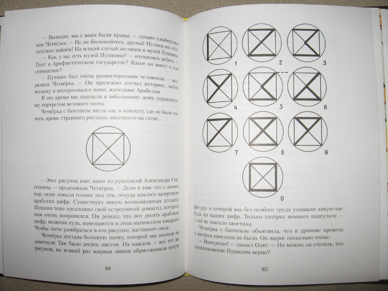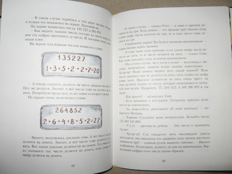 В детстве ни эта книга, ни что-то подобное мне не встретилось, к большому сожалению, т.к. книга очень и очень интересна. Помимо обычных приключений в этой книге требуется еще и решать математические задачи. Удивительно ли это, если учесть, что половина героев книги являются цифрами? Безусловно, нет! Более того, эти математические задачи совершенно не раздражают, очень гармонично вписываются в текст и увлекают настолько, что заканчивается книга неожиданно (не в смысле резкого сюжетного поворота, а в смысле, что раз - и уже конец). И я рада, что книга уже стоит на полке, поскольку расти до понимания написанного осталось не так уж и долго, а в пользе этого чтения и теперь уж не сомневаюсь. Конечно, обойтись можно и без нее, на уроках же так или иначе математику объясняют, но с ней-то изучать этот предмет гораздо интереснее. Точно уверена, что и остальные книги нам нужны (по крайней мере "Черную маску из Аль-Джебры" и "Фрегат капитана Единицы").