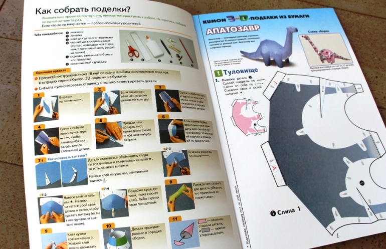 Тираннозавр и апатозавр. Kumon. 3D поделки из бумаги