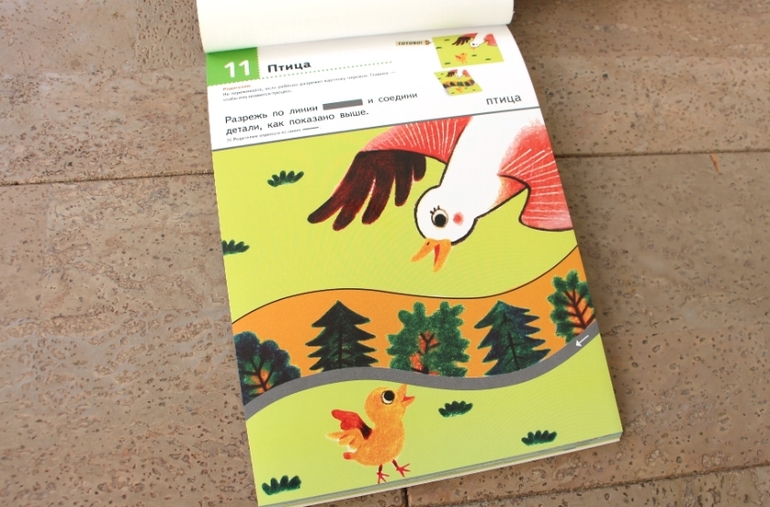 Страницы здесь офсетные (в предыдущих были мелованные) и намного плотнее. На первый взгляд и согласно всем отзывам сборка понятная, конечно для деток постарше нас. Держать в руках тетрадь просто приятно, она тоньше обычных, но гораздо жестче.