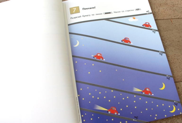 Особо неусидчивым деткам можно по каждому листу рассказать мини историю, Кумон в этом вам поможет. Например, машинка ехала целый день, вечер и ночь и вот что она видела вокруг….