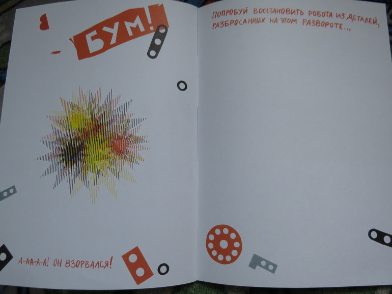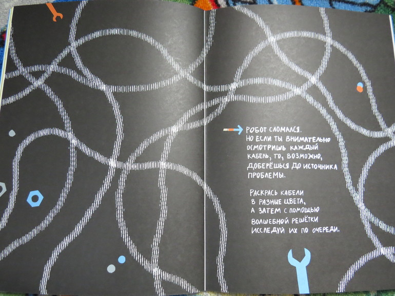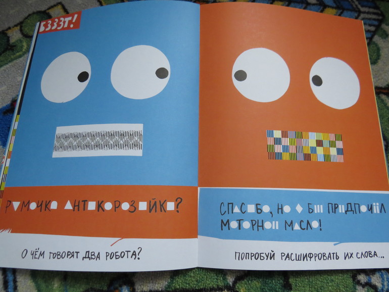 Это рабочая тетрадь с различными заданиями. Здесь у роботов крутятся глаза, двигаются руки. закипают мозги. Фантазии ребенка будет, где развернуться. Придумать своего робота и нарисовать - дело нелегкое )