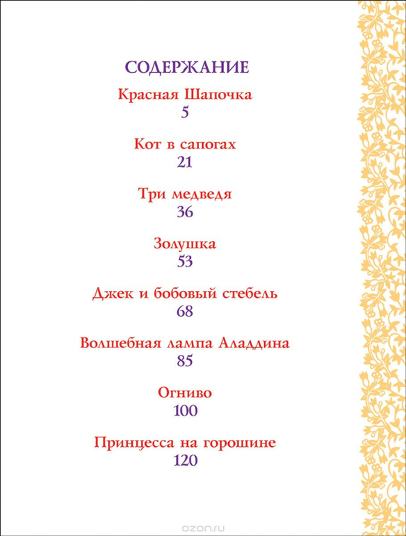 В сборник вошли самые известные и любимые сказки: «Красная Шапочка», «Кот в сапогах», «Золушка», «Аладдин», «Джек и бобовый стебель» и другие. Благодаря простому и понятному тексту, эти сказки смогут прочитать даже начинающие маленькие читатели. Книгу украшают великолепные иллюстрации всемирно известного художника Джона Пейшенса.