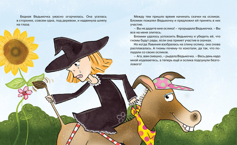 Из этой книги вы узнаете о том, как Ведьмочка Лавиния участвовала в скачках на ослике, нянчила малыша гнома, угодила в лапы врага, поймала самого настоящего грабителя и даже сразилась со злобной Жёлтой Ведьмой!