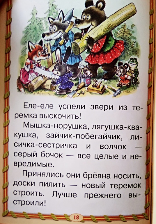 Концовка сказки "Теремок" здесь показывает как можно исправлять ошибки, сделав "лучше прежнего", и не сердиться друг на друга.