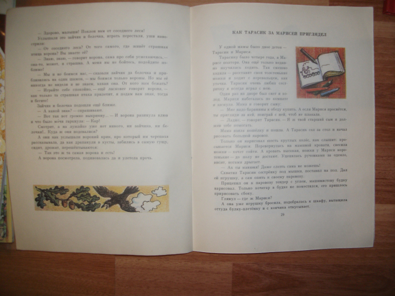 Вместе ходят за покупками, смотрят кино,играют, лечат. Книга издана неплохо, крупный шрифт, рисунки, мне показались не с оригиналов, но прилично .