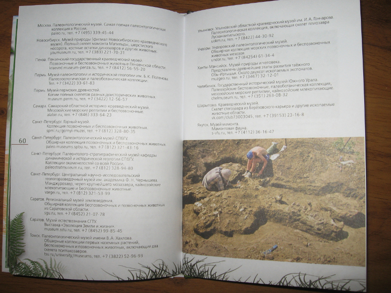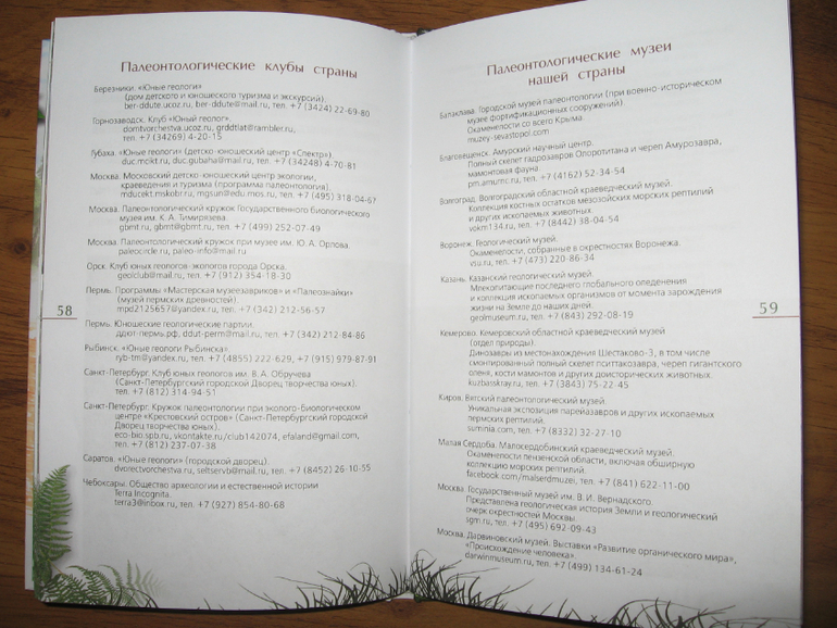 В самом конце книги приводятся списки палеонтологических клубов и музеев нашей страны, а еще небольшой список полезных сайтов (с указанием, чем именно тот или иной сайт полезен).