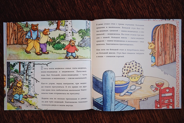 В книге также есть интересные рецепты по сказкам. Например, гороховая каша мамы-медведицы, кукурузный хлеб маленькой рыжей курочки или вкусные пышные блинчики на завтрак.