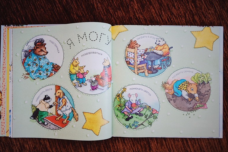 Рисунки в книжке выглядят будто изображения в старых хрестоматиях. От них веет теплом и уютом. И почему-то кажется, что это не современное издание, а что-то старое, что бережно хранили много лет где-нибудь на чердаке у бабушки, передавали из поколения в поколение и вот, наконец, достали для любимого внука или внучки.