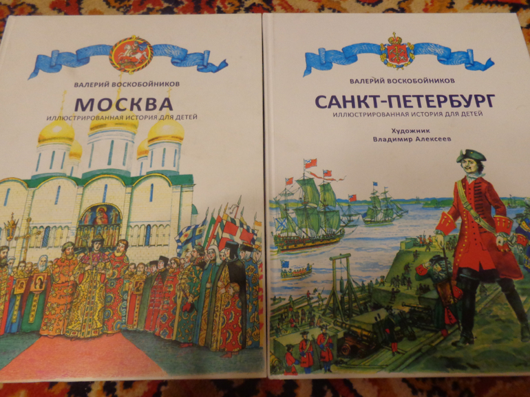 Да, да, я их купила! Мне удалось! Сама себя поздравляю!) Санкт-Петербург и Москва Воскобойникова всплыли неожиданно в Лабиринте, а я их - цап! и к себе)) Получилось))) Книги бОльшего размера, чем я ожидала, бумага мелованная. Репродукции картин в книге понравились, а иллюстрации...показались смазанными и нечеткими... Надеюсь, что так увлечет содержание, что просто не обращу на это внимание) Хотела, да забыла вчера посмотреть тираж книг - как-то быстро их расхватали! но не успела...гляну сегодня!