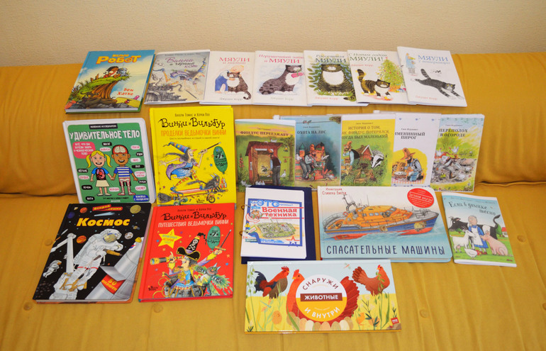 Зато много стали читать про Петсона и Финдуса. Начали мы про них читать ровно год назад, но сейчас прямо пик. Каждый день про них читаем и мультики смотрим.