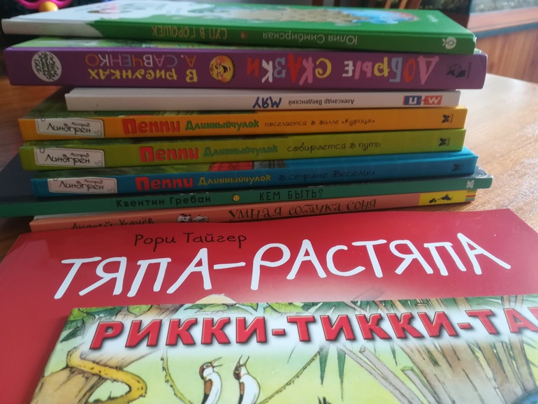 В этой стопке подарок для племянницы на 7 лет и книги для сына 2,3.