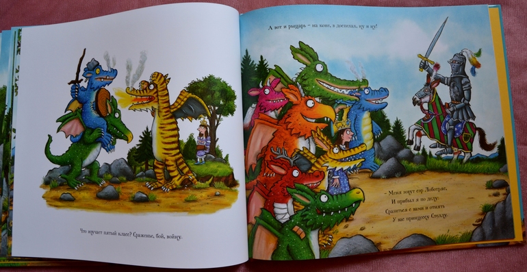 Картинки в книге очень яркие, сочные. Художник постарался на славу. Хотя есть книжка, в которой рисунки Шеффлера мне не особо нравятся - это Чик и Брики. Но здесь же... Мой восторг, мое почтение его таланту!