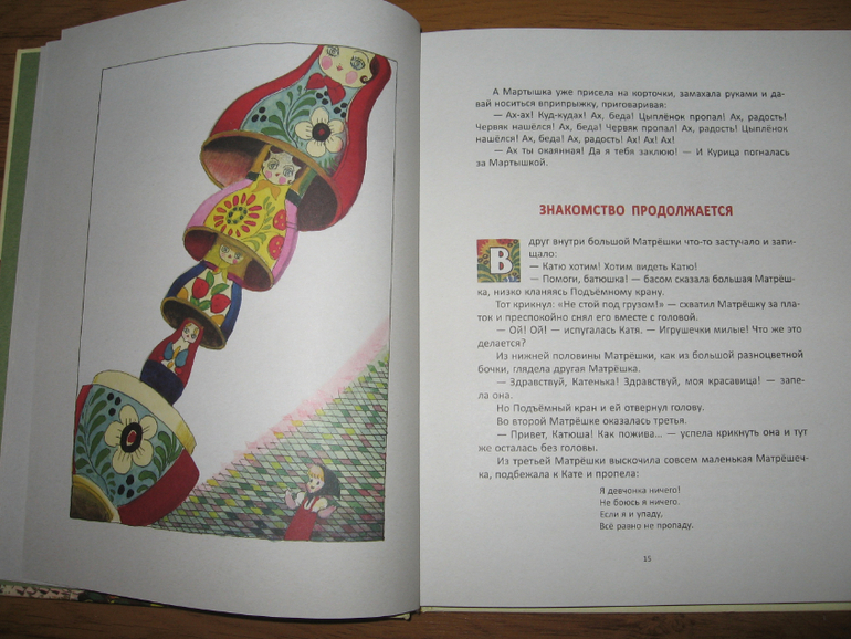По сюжету вопросов у дочери не возникло, кроме одного. Разве маму можно так выбирать и где настоящая мама у куклы Кати. Хотя она на него сама и ответила, что это же все сказки и не по-настоящему.