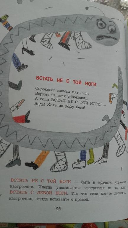 Наши дети копируют нас, в том числе и нашу речь, и вот сегодня сын говорит: "Мам, я сегодня встал не с той ноги (да-да я так говорю)))), хм...и что же это значит спрашиваю я))) Как что, что встал не с той ноги)))) Вот тут то мне и пригодилась эта книга, мы прочитали значение этого выражения, обсудили, прочли стих, он даже послушал стих, хотя вообще их не любит, но очень уж они озорные))