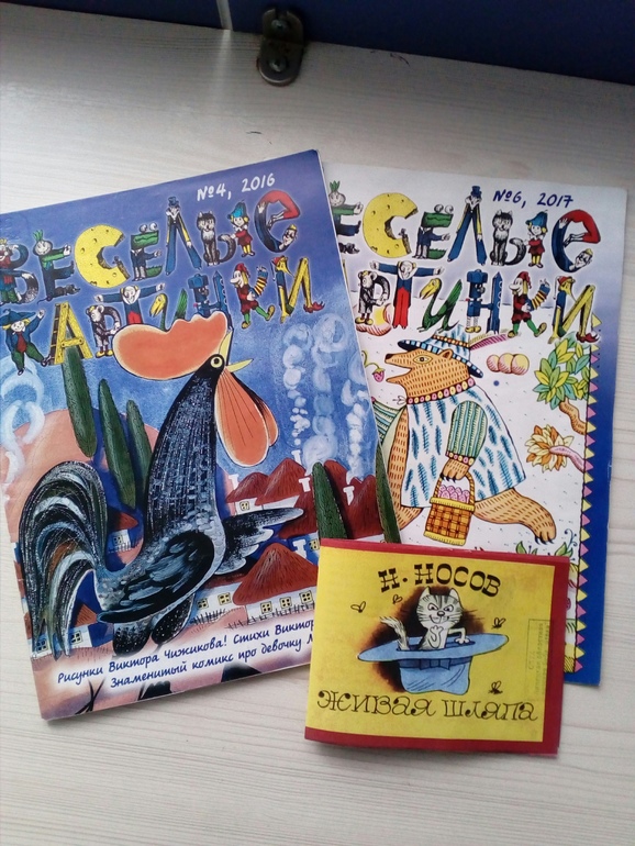 в прошлом месяце я взяла в библиотеке чисто из чувства ностальгии, но журнал нас заинтересовал, поэтому взяла еще. Больше всего дочке понравились именно "веселые картинки", то есть изображения, на которых что-то перепутано и смешно. Меня удивило, что в журналах много работ еще советских художников. Неужели сейчас некому рисовать? И вообще не покидало ощущение, что журнал мог бы быть лучше.