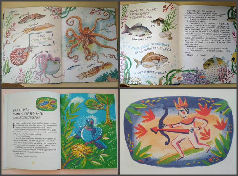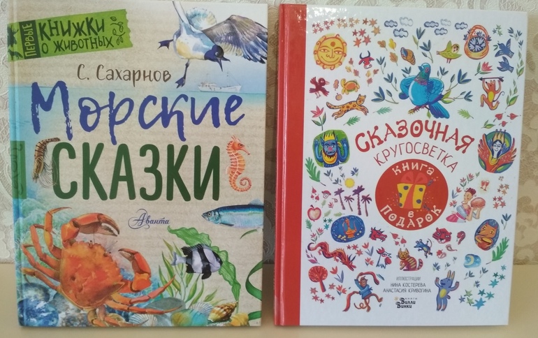 Морские сказки - любовь с первого взгляда, однозначно буду брать всю серию. Сказочная кругосветка разочаровала, но, как говорится, дарёному коню.. Иллюстрации на любителя, сами сказки вроде не плохие, то, что мне попалось на глаза, по крайней мере. Некоторые больше похожи на притчи. В Майшоп мне тоже дали такую книжку за заказ. поэтому одну я с чистой совестью подарила, а вторую решила пока оставить.