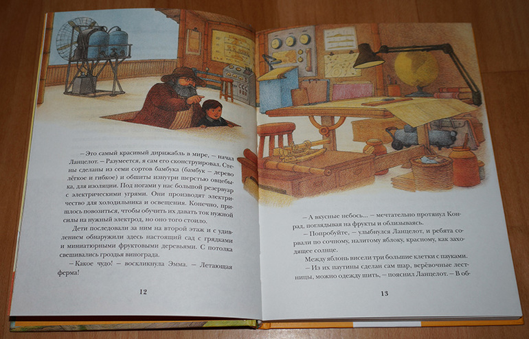 Главный герой "Летающего дома" дедушка Ланцелот соорудил самый необычный дирижабль в мире. Электричество здесь вырабатывают специально обученные электрические угри, ткань для шара и веревок ткут пауки. А еще здесь есть самый настоящий сад и несколько спаленок.