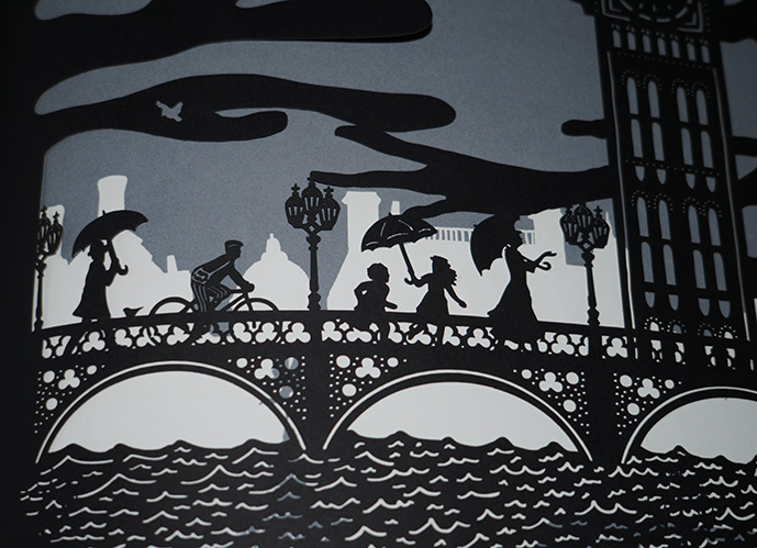 Однако вырезанные иллюстрации все-таки интереснее и необычнее. Кажется, что можно войти внутрь картины, растворившись в невесомости линий и образов.