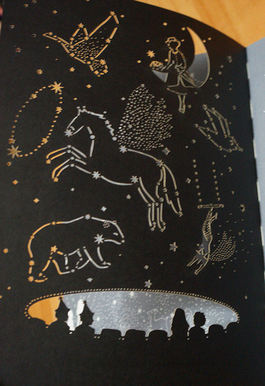 Книга невыразимо прекрасна. Ажурными иллюстрациями можно любоваться бесконечно. Кроме того, её очень плотная толстенная картонная обложка позволяет устойчиво пристраивать книгу на полу или на диване, возле стены, где тихим медитативным зимним вечером можно устроить настоящий театр теней. И погрузиться в невероятно прекрасную и добрую сказку.