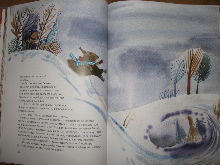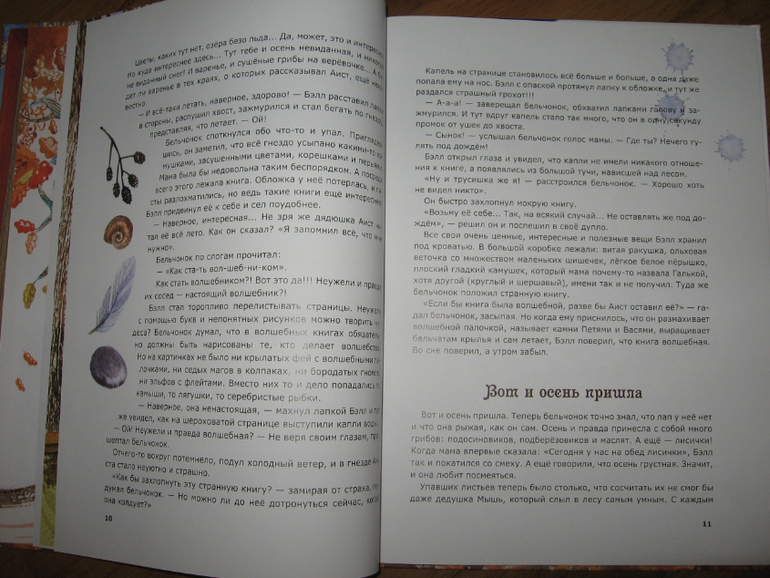 Книга, конечно, основательная, страницы очень плотные, бумага белая, а шрифт просто идеален для самостоятельного детского чтения. Но как я не пыталась подсунуть книгу Егору, он сам читать ее отказался. А вот мы с Алиской с удовольствием ее прочитали. Тем более, что Белочка и Тамарочка - это девочки, а все девочки - это любимые герои Алисы. Про девочек, феечек, принцесс и прочих дам мы готовы слушать бесконечно. Фенька - это вообще отдельный разговор, про нее, наверняка, большинство детей с удовольствием слушают. Егор в свое время раз пять подряд просил читать этот рассказ. А Алисе больше всего "Буква "Ты" приглянулась. На дальнейшее самостоятельное прочтение этой книги тоже очень надеюсь, такая красота должна читаться. А может и так перечитаем еще.